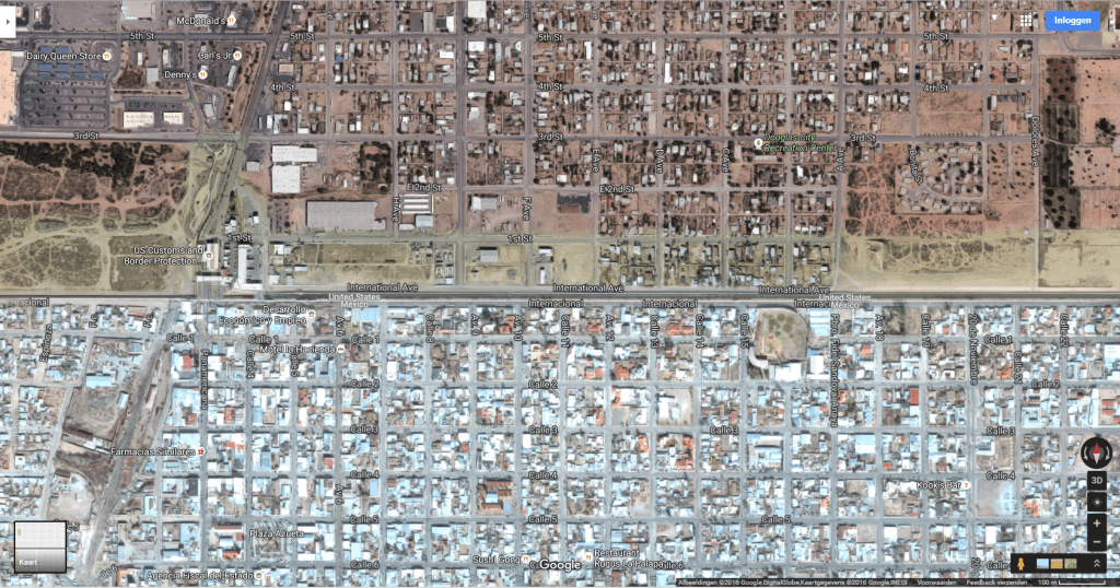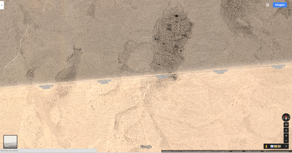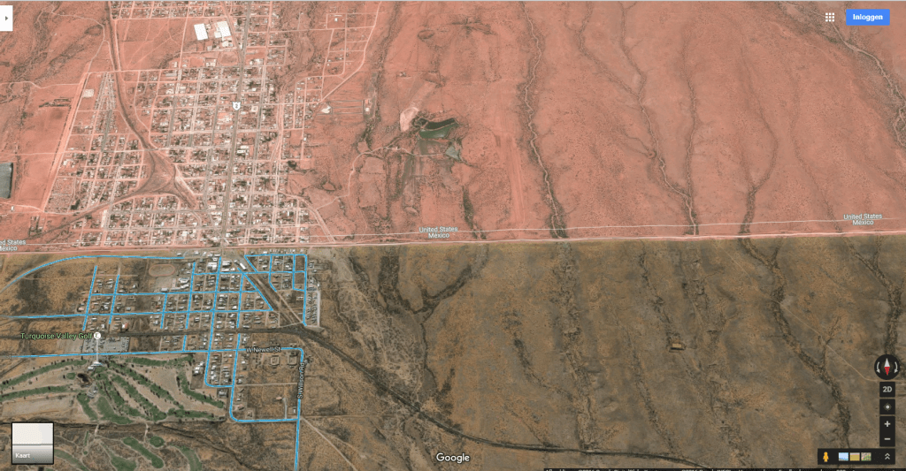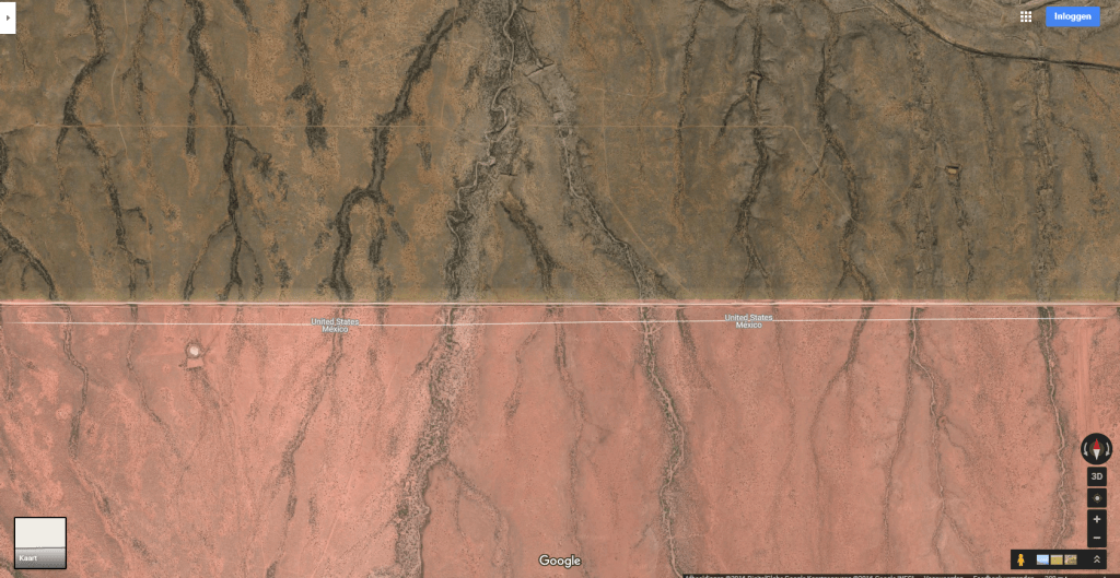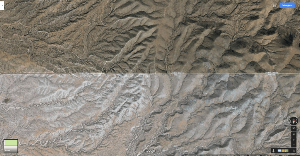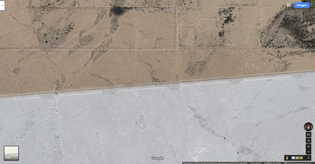 The print screens depict the satellite view of the border between USA and Mexico.